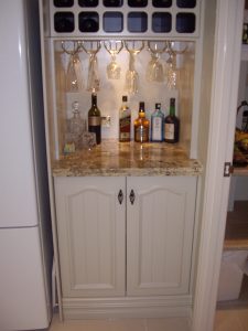 2 Pac patterned doors with Rolled laminate bench-top with Mini-orb bar-back